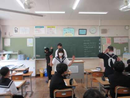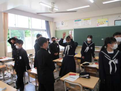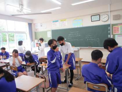 学級レク週間(1年) 公開日 2024/05/22 更新日 2024/05/22 校長室から 学校保健委員会の取り組みとして、本年度は「学級レク週間」を設けました。 「コミュニケーション能力の向上」を補うため、意図的に生徒同士が触れ合う時間を作る必要性を感じたからです。 朝の活動の時間を活用し、10分〜15分程度できるエクササイズを用意し、各学級で取り組みます。 1年生では、「伝言ゲーム」をして楽しみました。