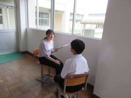 キャリアカウンセリング週間(教育相談期間) 公開日 2024/05/28 更新日 2024/05/28 校長室から 本校では、テスト週間に合わせて年に4回、担任と生徒が1対1で教育相談を行う、「キャリアカウンセリング週間」を実施しています。 事前に学習や生活の状況についてアンケートを行って、面談を行っています。 個別に話を聞くことで、担任と生徒の信頼関係を築く機会でもあります。