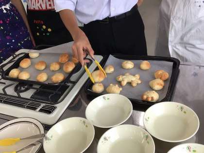 家庭科の授業でクルミ入りパンをつくりました。