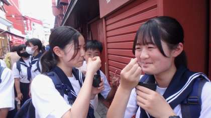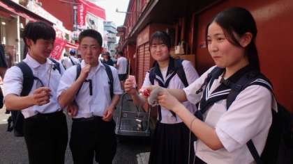 昼食の後にも関わらず、生徒たちは、食べ歩きをして楽しみました。