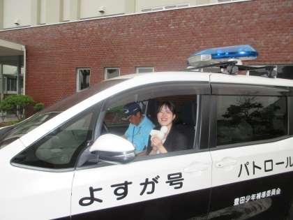 よすが号で学区パトロール