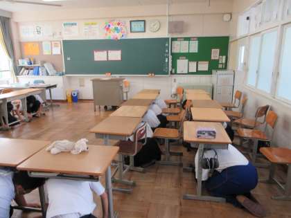 第2回避難訓練(Jアラート) 公開日 2024/09/02 更新日 2024/09/02 校長室から 今回の避難訓練は、Jアラート緊急情報(ミサイル発射情報)が発信されたと想定して行われました。 担任からの事前指導をあと、放送に従って、安全確保の体制をとる訓練が行われました。 異常気象や大きな地震があった夏休みでした。急なことにも対応できる生徒を育てていきたいと思います。