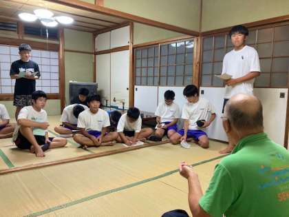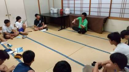 夕食を終えて、民宿泊ならではの世久見の人と語る会を開いていただきました。