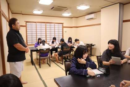 語る会では、海辺の生活で困ること、民宿のやりがい、などいろいろな質問をしました。ひとつひとつに丁寧にお答えいただきました。