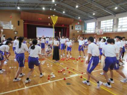 生徒会タイム(全校レクリエーション) 公開日 2024/09/26 更新日 2024/09/26 校長室から 生徒会役員が企画する生徒会タイム(全校レクリエーション)を行いました。 生徒会タイムは昨年度から始まり、好評につき今年度も行うことになりました。 「新聞紙タワー」「だるまさんの1日」「玉入れ」などに工夫を加えて、楽しいレクリエーションとなり、学校生活に潤いを与えてくれました。 生徒会のみなさん、ありがとうございました。