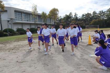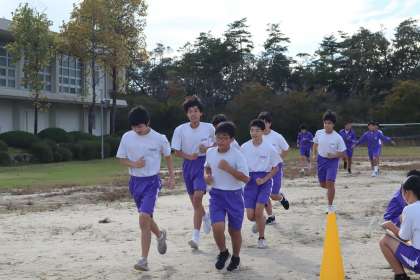 長距離走に挑戦(2年体育) 公開日 2024/11/01 更新日 2024/11/01 各学年から 2年生の体育の授業で、長距離走が始まりました。 今日は学年合同で1000mのタイム計測をしました。最後の計測まで、どのくらいタイムを縮めることができるでしょうか。これから授業で練習をしていきます。 また、11月には、みんなでタスキをつないでリレーする駅伝大会もあります。