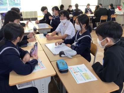 また、班ごとにオリジナルの条例をつくる活動を通して、自分だけでなく相手の権利も守ることの大切さを学びました。