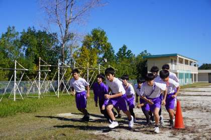 駅伝大会頑張りました(3年体育) 公開日 2024/11/11 更新日 2024/11/11 校長室から 3年生の体育科では、持久走に取り組んでいます。 学習のまとめとして、チームでたすきをつなぐ、駅伝大会を行いました。 各自も走力によって、自分の走る周回を決めてチームに分かれて、全員でリレーをします。 チームの応援を受けながら、必死の走りを見せてくれました。 このあと、1、2年生も同様に走ります。