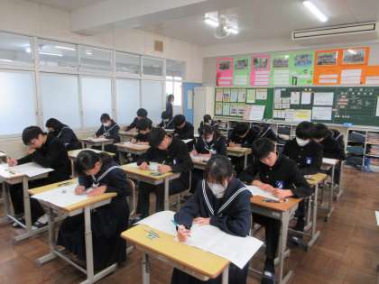 通常、中間テストは5教科で実施されますが、3年生は受験があるため9教科で実施します。なので、3年生だけ金曜日から3日間のテストとなります。