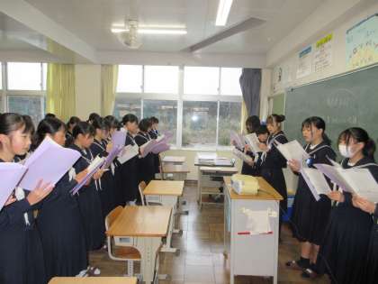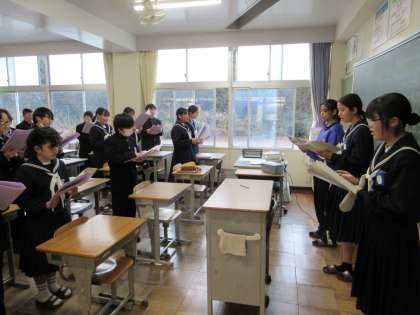 1・2年生は、卒業式に向けて朝の活動の時間に合同で合唱練習をしています。