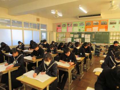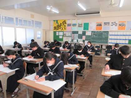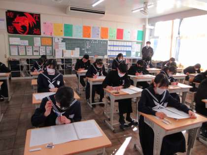 学年末テスト頑張ってます(全校) 公開日 2025/02/13 更新日 2025/02/13 校長室から 1・2年生は昨日から、3年生は今日から学年末テストが始まりました。 学年のまとめとなるテストですので、範囲も広くテスト勉強は大変だったと思います。 どの子も学習の成果を発揮しようと真剣にテスト問題と向き合っているのが印象的でした。 あと1日頑張ってください。