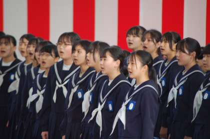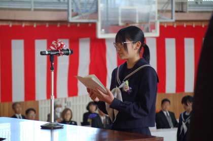 卒業証書授与に続いて、校長式辞、来賓祝辞、在校生送辞と合唱、卒業生答辞と合唱でした。