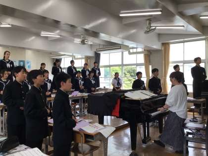授業風景 公開日 2025/04/25 更新日 2025/04/25 各学年から 3年生は、体育の授業で体力テストの20mシャトルランを行っていました。なかなか大変な種目ですが、みんな精一杯がんばっていました。 2年生は、美術の授業で、作品作りのために、自分にとって「大切な人」について、考えていました。素敵な作品ができるといいですね。 1年生は、音楽の授業で発声練習を行っていました。とてもきれいな声が響いていました。