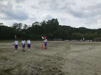 5・6時間目に、全校で体育祭練習をしました。グランドの状態はあまりよくありませんでしたが、入退場の練習や係の動きの確認をしました。体育祭に向けての気持ちががどんどん高まってきました。