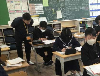 今日から、学生ボランティアの方が来ています。毎週金曜日に、英語の授業を中心に、授業の補助をする予定です。いろいろな方に、教えてもらえることは、生徒にとって大変ありがたいことです。