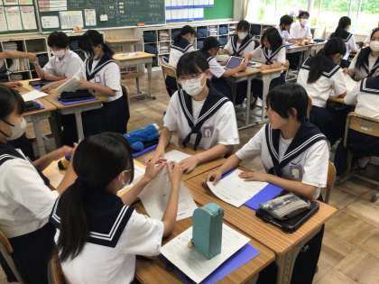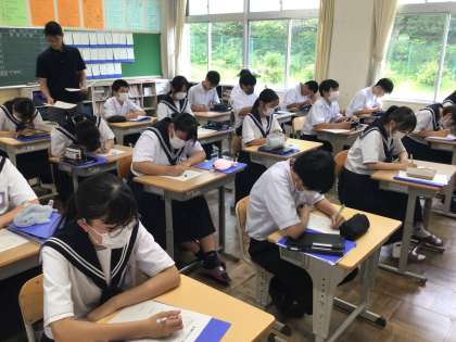 2年生は、職場体験学習に向けて、体験先ごとに分かれて、「追及テーマ」を決めていました。明後日からの職場体験学習で、体験してきたことをまとめ、最終的には1年生の前で発表します。