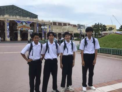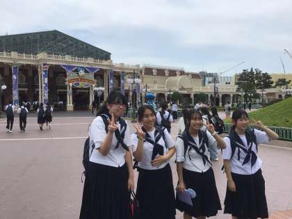 ディズニーランドに入りました。入ってすぐのところで班ごとに写真を撮りましたので、アップします!