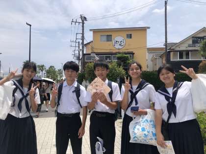 江の島で、ご飯を食べたり、お土産を買ったりしています。