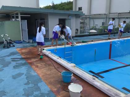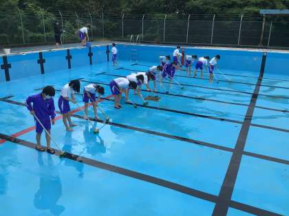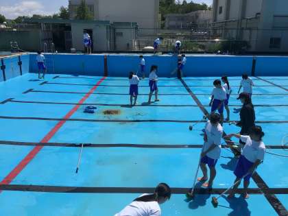今日は昨日の続きで、2・3年生がプール掃除をしました。暑くなってきたため、午前中しかできませんでしたが、みんなががんばってくれたおかげでどんどんきれいになってきました。