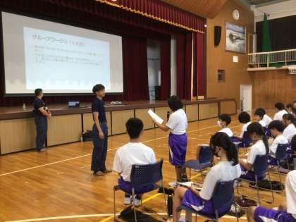 消防署小原分署の方が、熱中症にならないための方法や、熱中症になった時の対応について教えてくれました。「家の方に教えてね」と話されていましたので、ぜひお子さんに聞いてみてください。