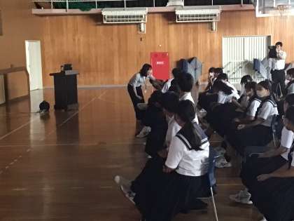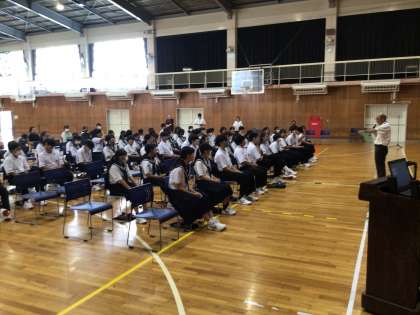 3時間目に、1年生を対象に、ネットモラル講座を実施しました。講師の先生から「トラブルにならない」、「犯罪に巻き込まれない」SNSの使用方法などを教えてもらいました。ご家庭でも、スマホなどの使用のルールを決めていただき、正しく使用できるようにしてください。
