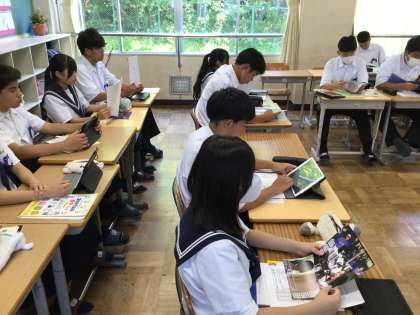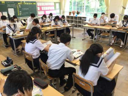 3年生は、総合の時間を使って進路学習を行っていました。いろいろな学校の特徴を調べる中で、本当に自分に合っている学校、行きたい学校を決めていってほしいと思います。