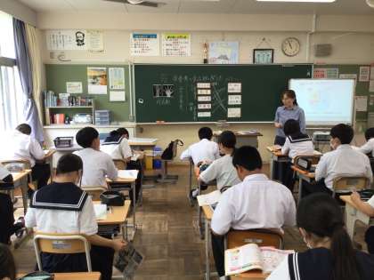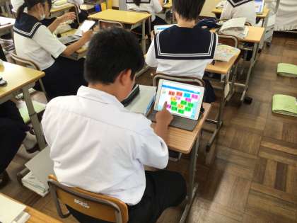 1年生は、社会の授業でタブレットを使用し、歴史の学習をしていました。