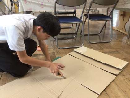 来週、1・2学級主催で七夕パーティーが行われます。現在、その準備のため、1・2学級のみんなは自分の担当する屋台の準備と七夕飾りをつくっています。