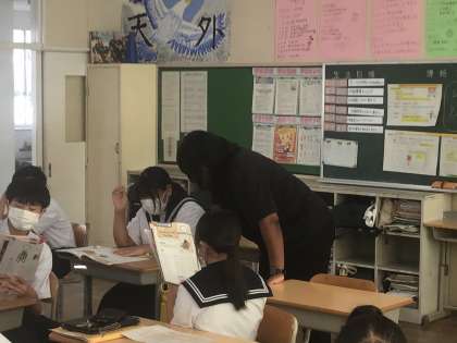 今日が、今のALTの先生との最後の授業となりました。いつも優しく英語を教えてくれ、感謝しています。これからも元気にがんばってください。