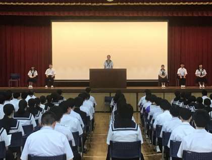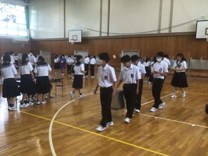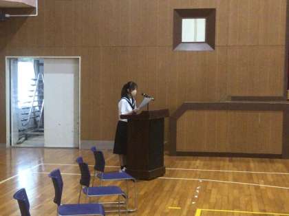 本日、5時間目に後期生徒会役員選挙がありました。6名の生徒が、全校生徒の前で、今後どのような活動をしていきたいかなどを演説しました。6名とも立派な演説ができました。また、聞いている生徒も真剣に演説を聞いていました。