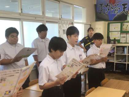 藤華祭の全校合唱に向けて、縦割りで毎朝練習しています。3年生が中心となって練習していますが、教員もサポートをしています。全校生徒・教員で作り上げる「翼をください」、どんな素敵な歌に仕上がるかとても楽しみです。