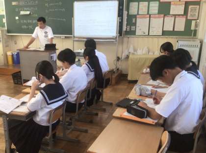 1年生は、数学の授業で、「Qubena」を使って、練習問題に取り組んでいました。それぞれのペースで問題を解くことで、自分の力を伸ばしていきます。