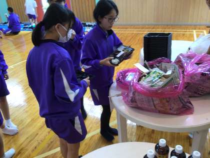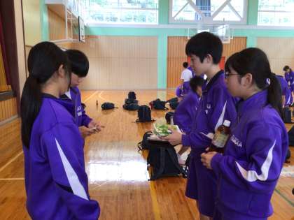 昼食の時間です。ソースカツ弁当を美味しくいただきました。片付けも協力して行いました。
