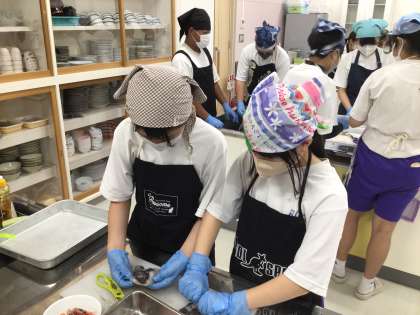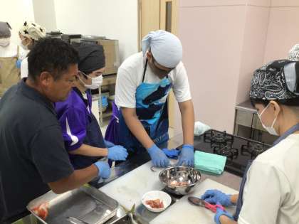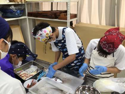 あおりイカ、甘エビ、青子、カジキマグロ、敦賀まだいを自分たちでさばいてマイ海鮮丼を作ります。上手にできるといいですね。