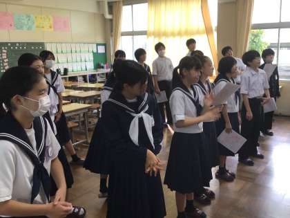 今日は、朝の合唱練習で、学級の歌を練習していました。どの学級もきれいな歌声を響かせていました。来週は、講師の先生を迎えて、合唱講習会を行います。さらに素敵な歌に仕上げていきましょう。