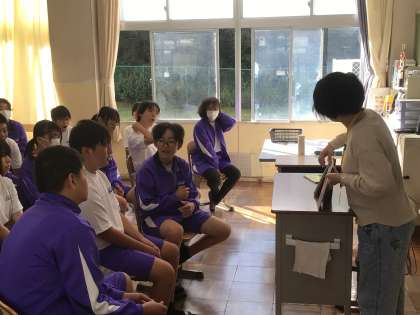 朝の時間に本年度3回目の読み聞かせを行っていただきました。生徒にとっては、心を育てる、とても良い時間になっています。