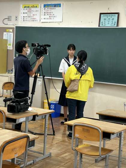 本日は、朝から終日、ひまわりネットワークの方がきて、「じもちゅー」の撮影をしています。藤中生のがんばっている姿をたくさん撮影してもらいたいと思います。なお、本日撮影されたものは、11月24日(月)から放映される予定です。