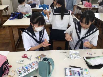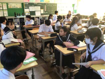 10/17 授業風景 公開日 2025/10/17 更新日 2025/10/17 各学年から 1年生は、英語の授業で、ペアになって覚えた単語の確認をしていました。 2年生は、美術の授業で、粘土で和菓子を作っていました。 3年生は、英語の授業で、グループごとにALTが英語で出題するクイズに答えていました。 どの学年も、楽しみながらも真剣に授業に取り組んでいました。