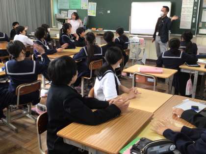 1年生は、英語の授業で、ALTの先生と一緒に楽しく学習していました。