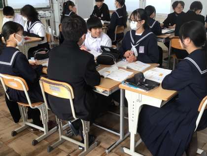 2・3年生は、数学の授業で、仲間と話し合いをしていました。