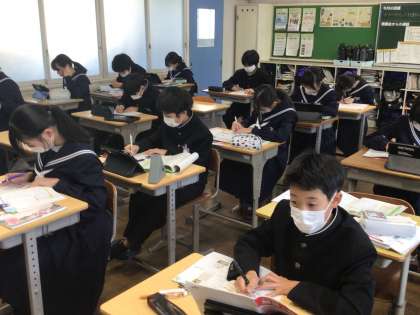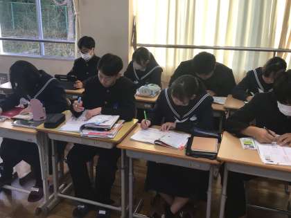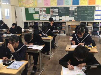 6時間目の後は、今日もキャリアカウンセリングです。キャリアカウンセリングは、一人ずつ行うので、ほかの生徒は、みんなテスト勉強をして待っています。どの学級も集中して、各自テスト勉強を進めていました。