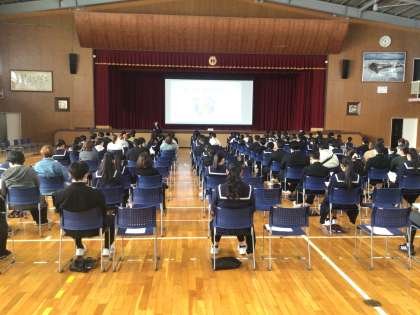 本日、2時間目に進路説明会を開催しました。Web出願・推薦入試・今後の日程などについて説明を行いました。3年生の皆さんが自分にとって最高の進路を選択し、それが実現できることを願っています。がんばってください。
