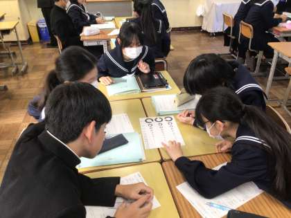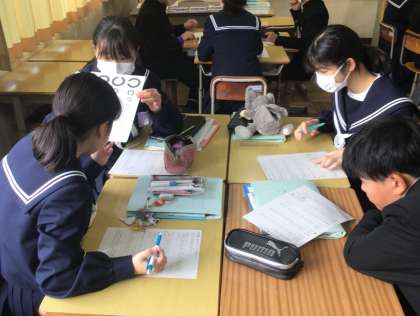 11/28 1年1組数学 公開日 2025/11/28 更新日 2025/11/28 各学年から 数学の時間に、「視力0.05のランドルト環(視力検査に使う「C」のマーク)をつくろう!」の課題のもと、比例・反比例の利用に取り組んでいました。実際に、ランドルト環の「円の直径・線の幅・隙間の幅」を図り、表を作成し、調べていました。班員で協力しての活動でしたが、とても興味深い授業でした。みんな0.05のランドルト環はできましたか?