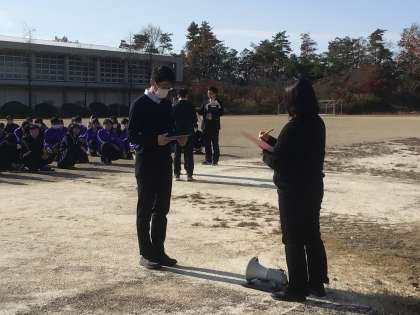 12/1避難訓練 公開日 2025/12/01 更新日 2025/12/01 学校行事 2時間目後の休み時間中に「火災発生」の放送が入り、グラウンドに避難しました。今回は、より緊張感をもてるように、今日のどこかの時間で避難訓練が行われるというアナウンスしかしていませんでした。しかも、授業中ではなかったため、近くに教師がいない生徒たちもたくさんいましたが、放送の指示をよく聞き、自分たちで判断をして避難することができました。 訓練後の雑巾の片付けまで、有志でしっかり取り組んでくれました。