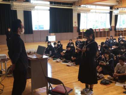本日、5時間目に学校薬剤師の先生を講師にお迎えし、薬物乱用防止教室を実施しました。薬物の危険性や正しい薬の処方の仕方を教えていただきました。また、水以外のものと一緒に薬を飲むと効果が得られないことがあると、実験を通して学ぶことができました。1年生にとって、とても勉強になる時間となりました。