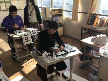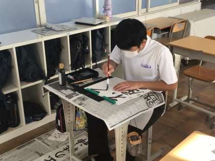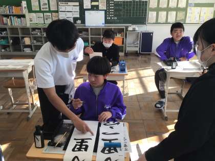 1・2学級では、国語の時間に書き初めの練習をしていました。今年度初めての練習でしたが、みんなとても上手に書いていました。また、書き方を教え合っている姿も見られました。1月7日が、書き初め大会本番です。どんな字が書けるかとても楽しみです。がんばりましょう。