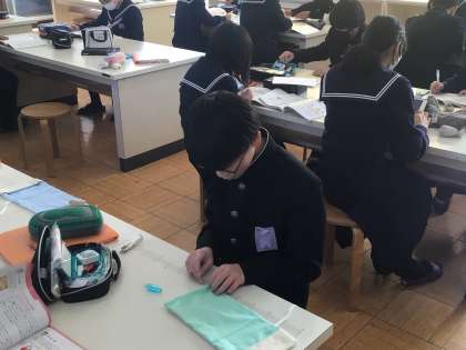 家庭科の時間にブックカバーの製作をしていました。ボランティアの方にも手伝っていただき、手縫いやミシン縫いを教えてもらい、それを生かしての製作です。本日、全員の作品が完成します。素敵な作品に仕上がったでしょうか?