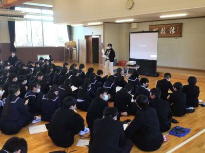 2年生が、4時間目に学年集会を行いました。冬休みに向けて、学習・生活についての話などを聞きました。いろいろなことに挑戦して、充実した冬休みにしてください。