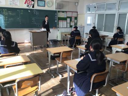 3年生は、理科の時間に、テストの確認を行っていました。本日は、私立高校の推薦入試のため、いつもより人数が少ないですが、みんな真剣に授業を受けていました。