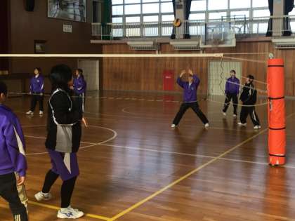 2年生は、体育の授業で、バレーボールを行っていました。パスをつないでネットをこえさせる練習でした。基本練習を繰り返しすることで、試合ができるようになってきます。